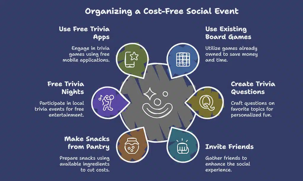 Game nights are fun without spending money. Trivia events can bring friends together on a budget.