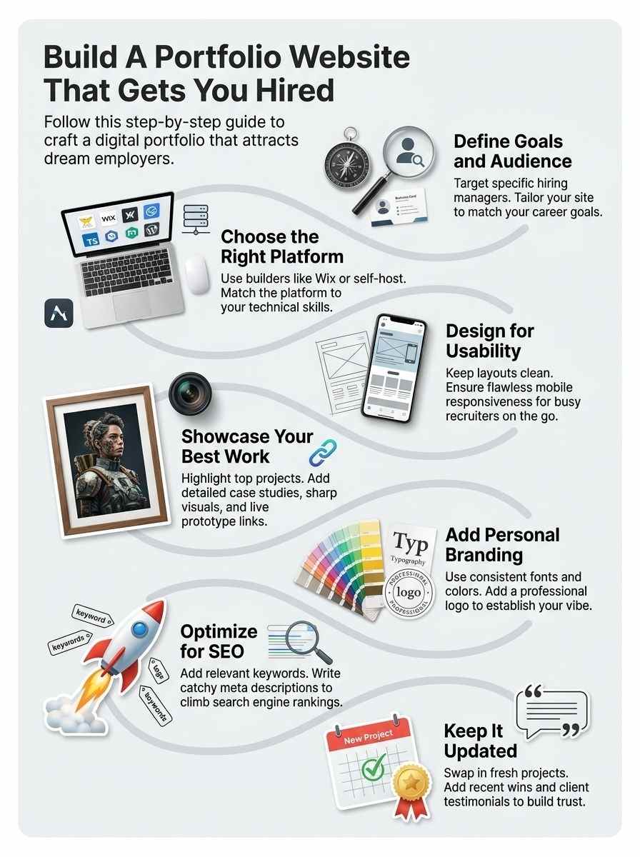 Think your portfolio site as a welcoming front door, so prioritize easy navigation and clean layouts with tools like Figma or Sketch, and always test for smooth views on phones and tablets to hook those recruiters—curious for step-by-step tricks, keep scrolling!