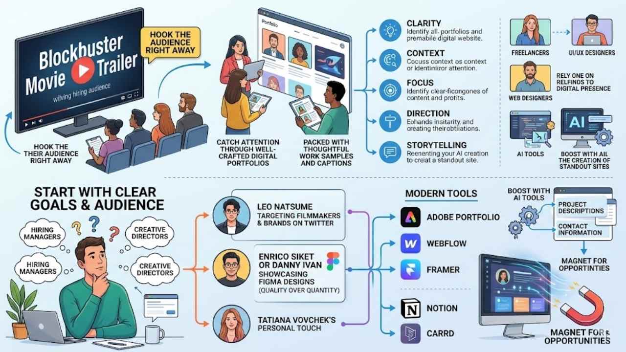 Picture your career as a blockbuster movie, and your online portfolio acts as the trailer that hooks the audience right away. Good portfolios shine with clarity, context, focus, direction, and storytelling, pulling in hiring managers who scan tons of resumes daily.