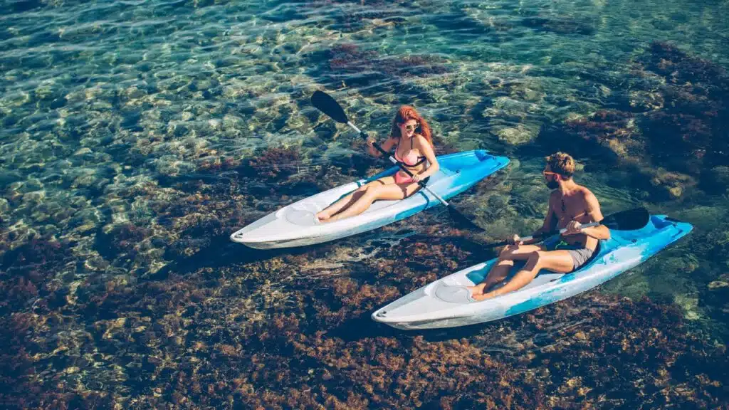 You can explore hidden coves with diving goggles or glide across glassy waters on a watercraft.
