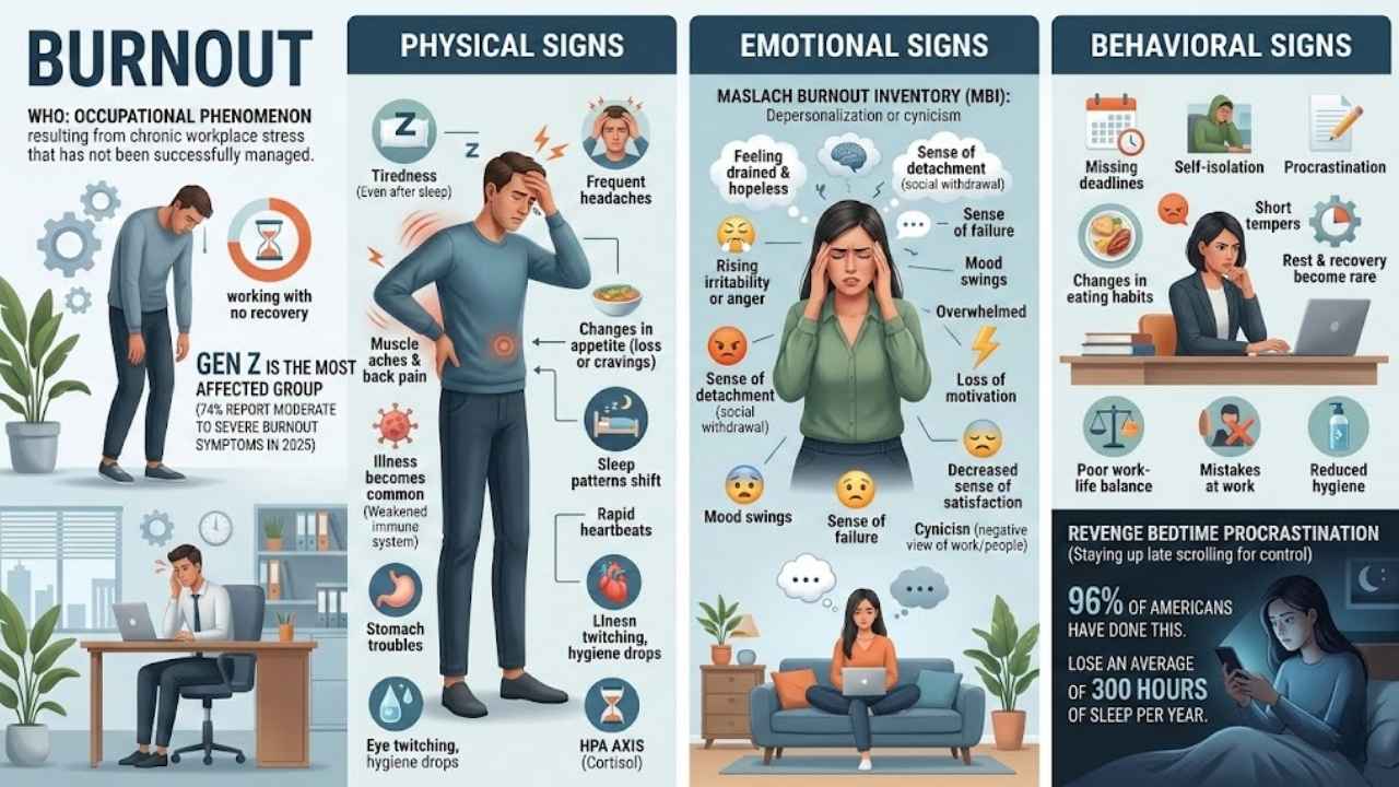 “Burnout is not just about working too hard. It is about working with no recovery. Recent data shows Gen Z is the most affected group, with 74% reporting moderate to severe burnout symptoms in 2025.”