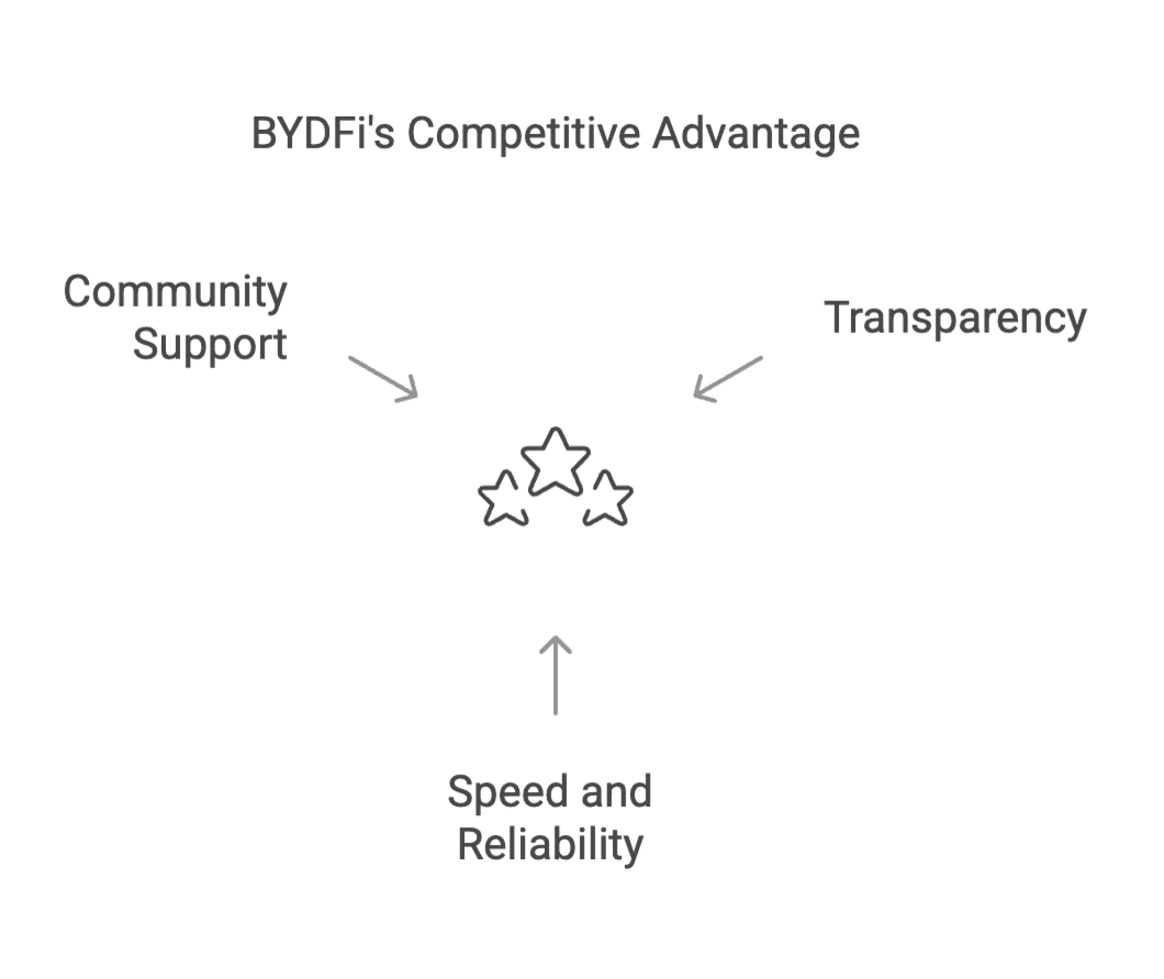 BYDFi stands out with its low fees, advanced features, and focus on user security and satisfaction.