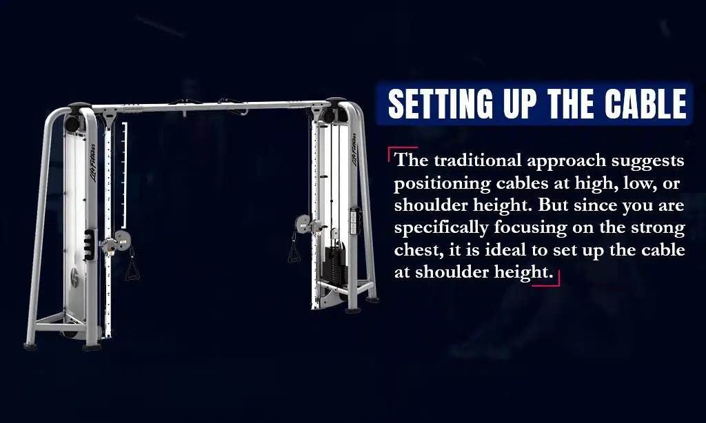 The traditional approach suggests positioning cables at high, low, or shoulder height. But since you are specifically focusing on the strong chest, it is ideal to set up the cable at shoulder height.