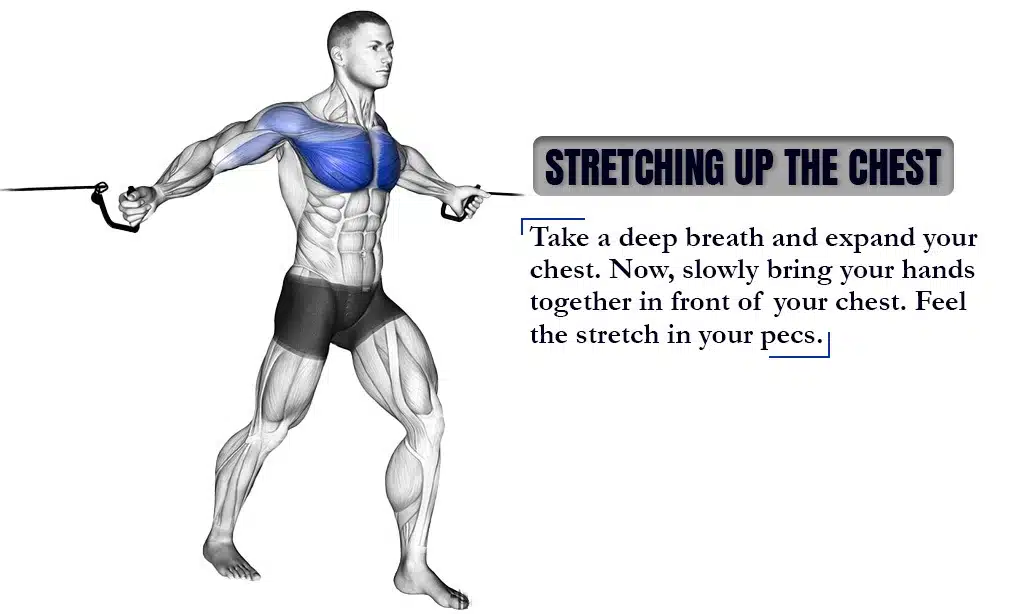 Lean a little forward when you are performing the crossover. This will intensify your stretch. It amplifies the stretch sensation, which will hit your chest from a different angle and enhance the overall effectiveness.