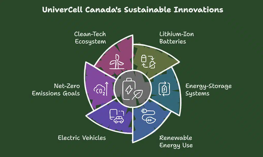 UniverCell Canada focuses on improving battery technologies for a greener future. The company works on innovations in lithium-ion batteries and energy-storage systems, aiming to boost renewable energy use.