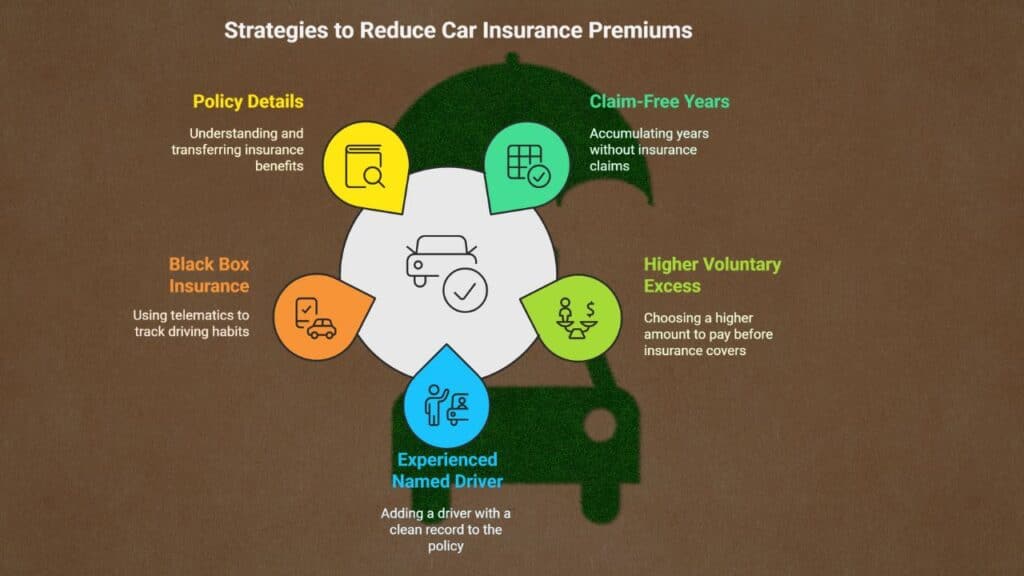 New drivers can build a driver score with safe driving; they may get cashbacks or vouchers. Hard braking or fast turns can add to your premium if your policy rates you as risky. You can choose a higher voluntary excess to cut base rates, but you must pay more after a claim.