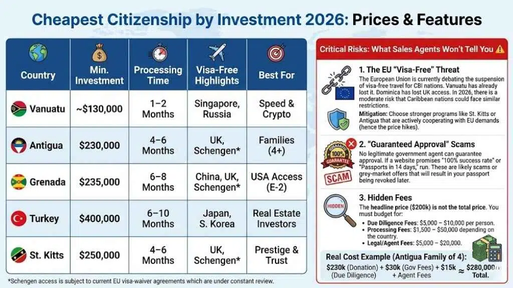 Cheapest Citizenship by Investment 2026 Prices & Features