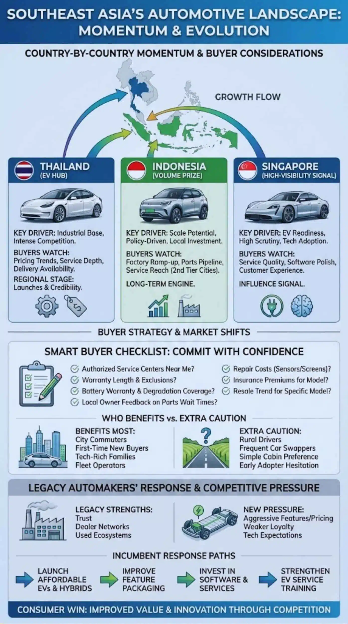The rise of Chinese car brands in Southeast Asia is not a single-wave event. It is a multi-factor shift driven by pricing, EV timing, localization, software-led experiences, and fast distribution strategies.