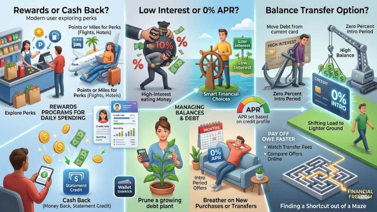 Think about what perks excite you most, like earning points on everyday buys or getting money back on gas and groceries. Ask yourself if slashing interest rates matters more, or if shifting old debts to a fresh card could ease your wallet’s load, sparking smarter choices ahead.