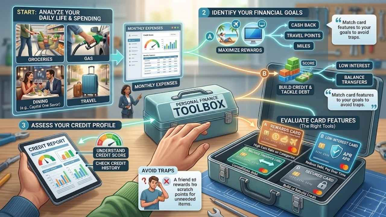 Start by looking at your daily life. Think about how you spend money each month, like on groceries or travel. This ties right into your personal finance picture. The best credit card for you depends on three key factors: your spending habits, credit profile, and what features matter most to you.