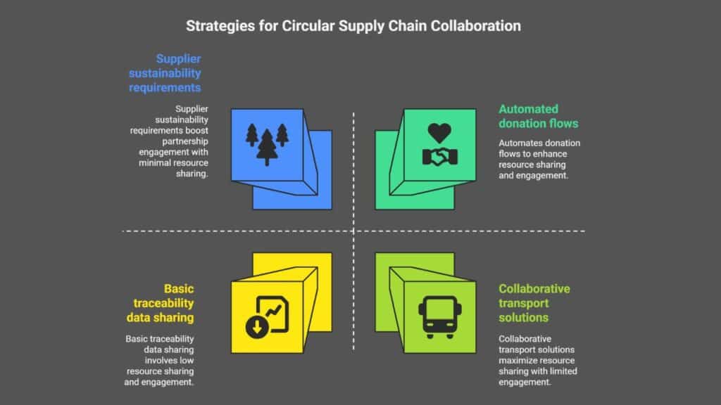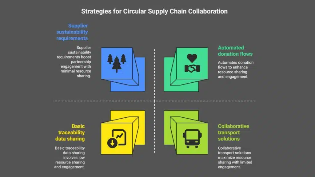 Partners share resource-efficient operations data, passing the baton with real metrics. Teams spot surplus materials and launch circular business models.