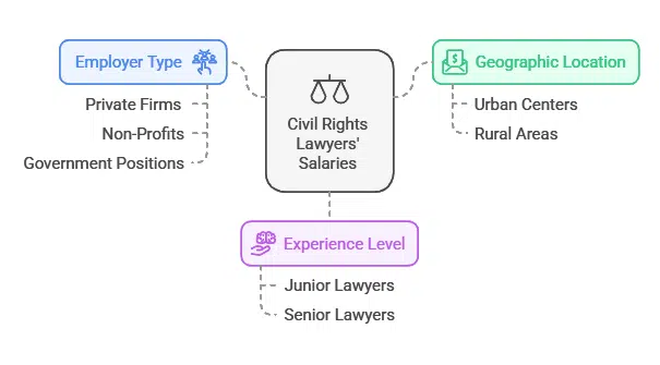 Civil rights lawyers earn varying amounts depending on several factors, such as employer type, geographic location, and level of experience.