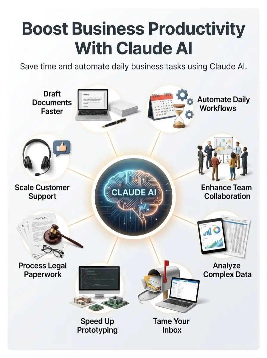 Claude AI helps businesses save time, simplify daily tasks, and boost teamwork. You can draft documents, automate emails, or crunch numbers in one spot. By using these professional tools in your workflow, you will speed up boring chores. This gives you room to focus on big-picture goals. Make today the start of smarter work. Figuring out how to use Claude AI for business productivity could lead your team to incredible success!