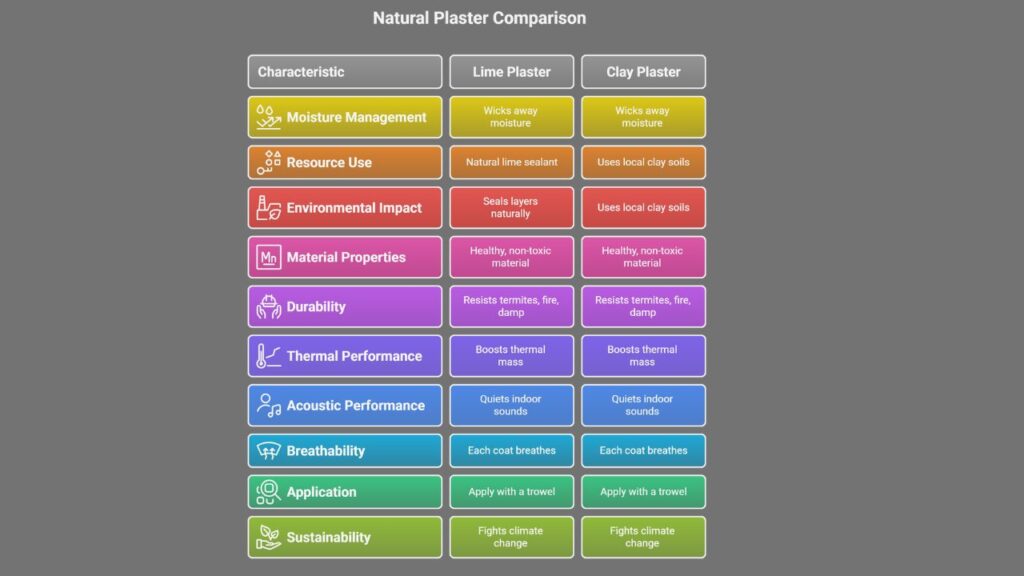 - Applying lime or clay plaster wicks away moisture, improves indoor air quality, and can include recycled glass or denim for added insulation.
