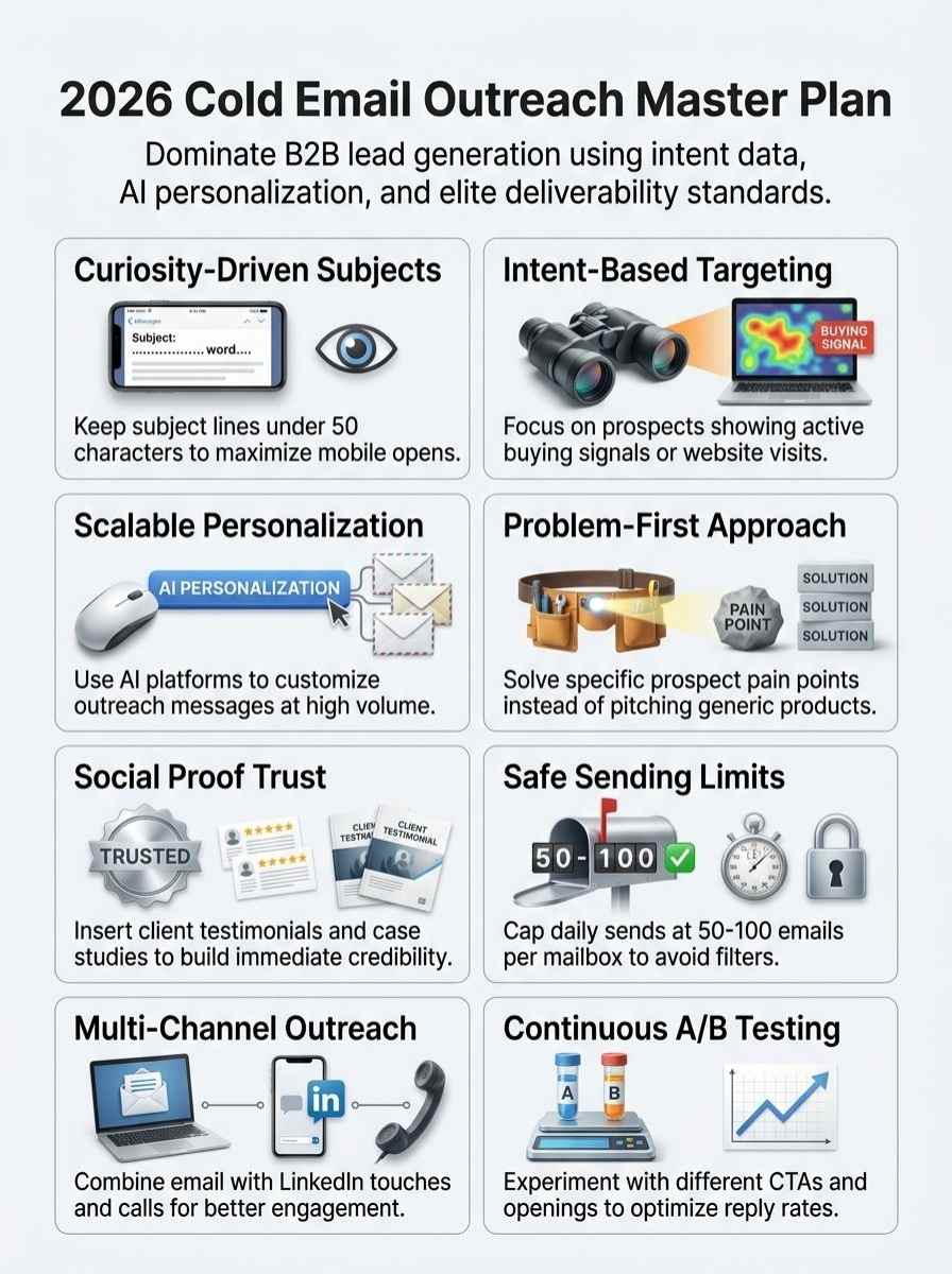 - Focus on quality over quantity in prospect selection, which boosts cold email effectiveness in 2026, so you pick leads with real intent signals instead of blasting everyone and triggering spam filters.