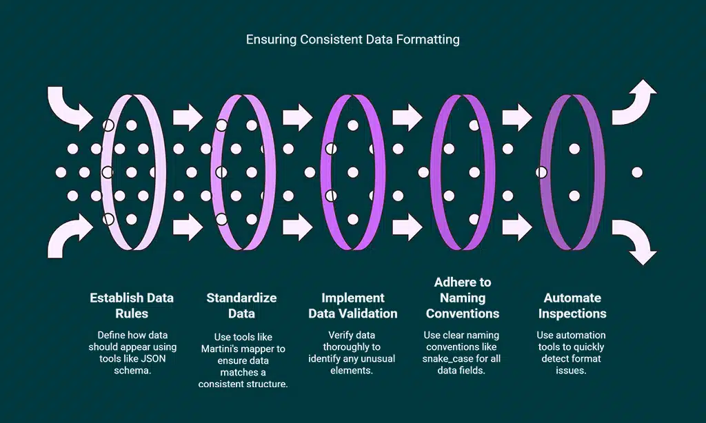 - Normalize data before passing it between systems. Use data normalization to keep formats like snake_case consistent. This stops messy data from gumming up your works. It’s like tidying up before guests arrive.