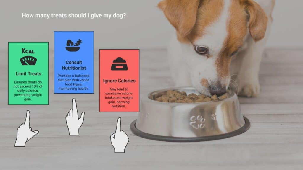 Treats should not exceed 10% of a dog’s daily calorie intake. Owners often grab snacks when dogs beg, without counting calories. Treat calories can pile up, especially for small breeds, and harm dog nutrition.