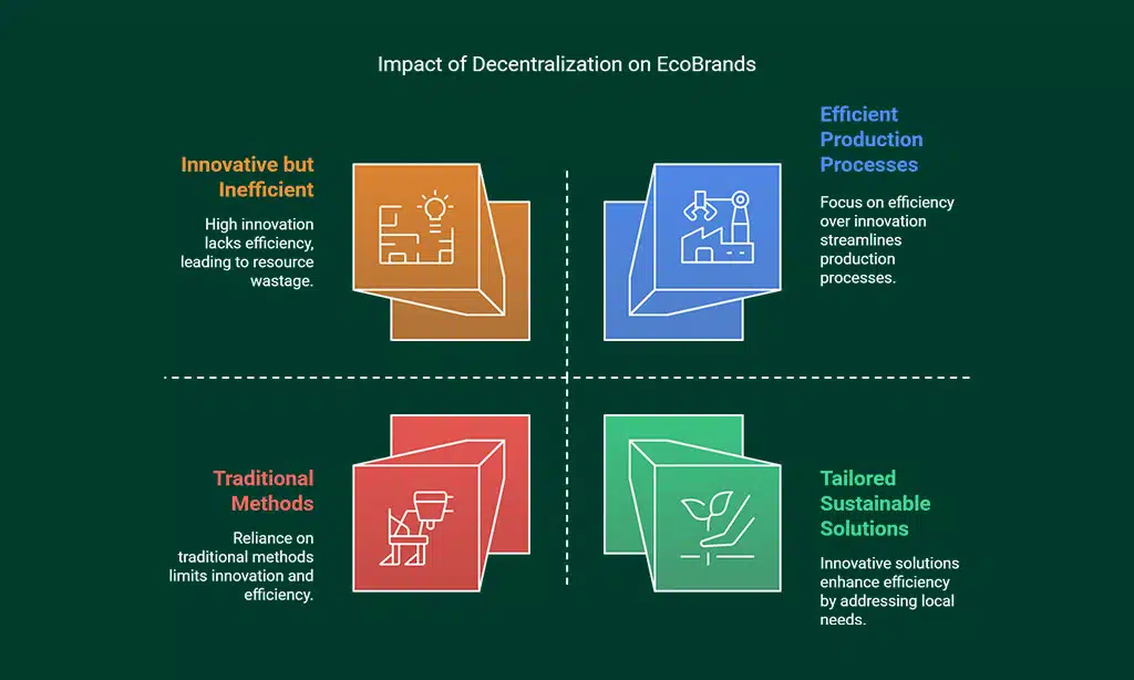 EcoBrands, a sustainable product manufacturer, shifted to a decentralized business model to improve responsiveness and innovation across its production facilities. By decentralizing decision-making, the company empowered local teams to adapt to regional sustainability challenges and create tailored solutions for customers.