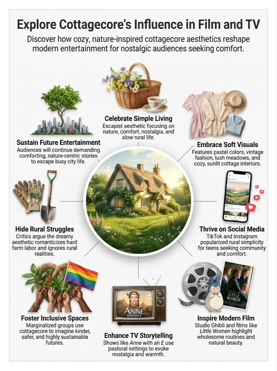 Cottagecore’s influence in movies and TV brings a genuine breath of fresh air. Audiences find simplicity, nostalgia, and nature woven into stories that actually soothe the soul.
