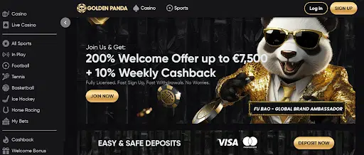 - Golden Panda – 200% Welcome Bonus up to $5,000 Plus 50 Free Spins