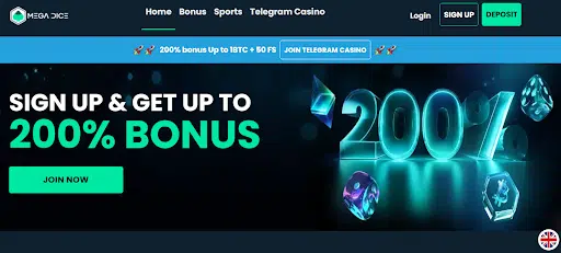 - Mega Dice – 200% Welcome Bonus up to 1 BTC Plus 50 Free Spins