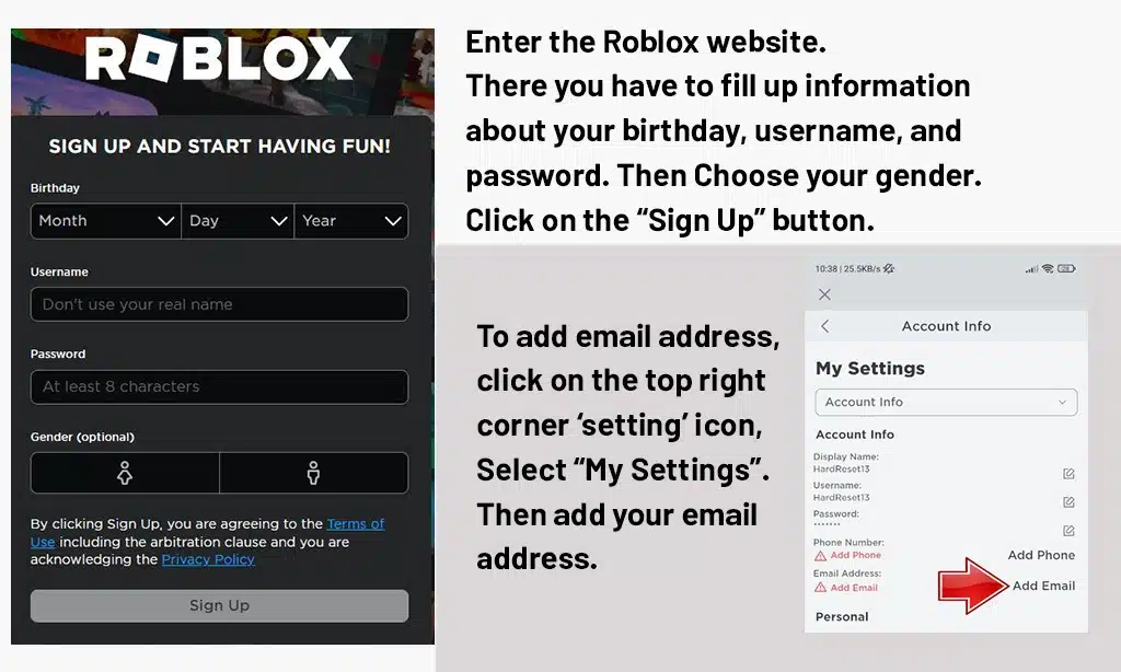 Step 5: After filling out all the information, sign in, set up an email, and now you have yourself another new Roblox account.