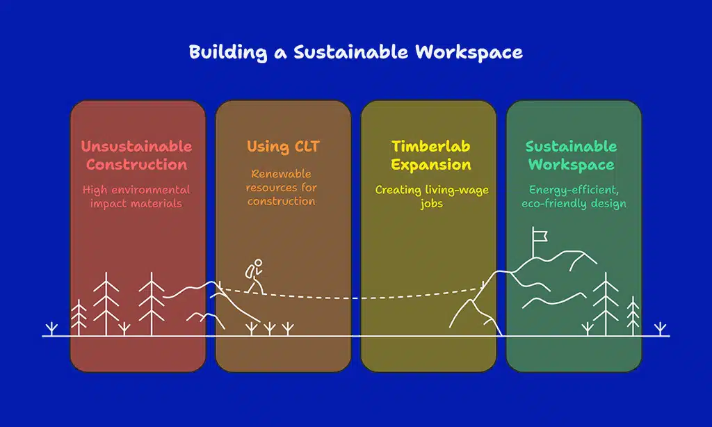 Picture a bustling new hub rising by the river, built with renewable resources like glue-laminated timber (GLT). Timberlab, a key player here, sources locally harvested wood from rural Oregon.