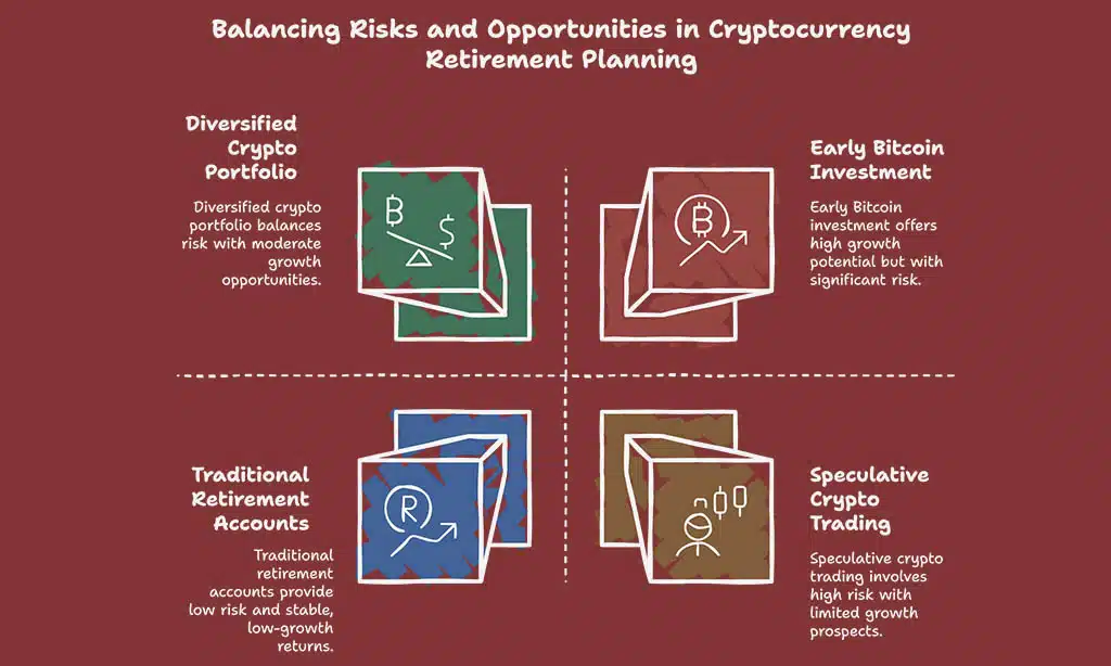 Cryptocurrency can shake up how you plan your retirement. It brings both chances for gains and risks that need careful thought.