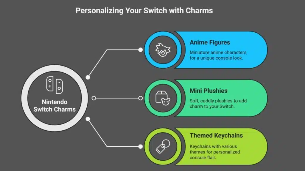 Give your Nintendo Switch a playful twist with cute or quirky charms. These tiny accessories hook onto the headphone jack, adding flair without getting in the way. Pick anime figures, mini plushies, or even themed keychains to match your vibe.