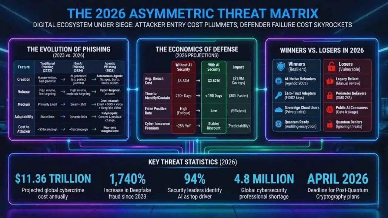 - Economic Impact: Global cybercrime costs are projected to reach $11.36 trillion annually this year, forcing a stark divide between organizations that can afford AI-driven defense and those that cannot.