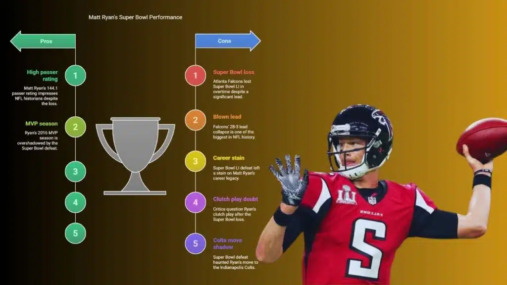 - Critics point to the 28-3 collapse in Super Bowl LI and his lone title-game loss, while supporters cite his MVP season and career stats in ongoing Hall of Fame debates.