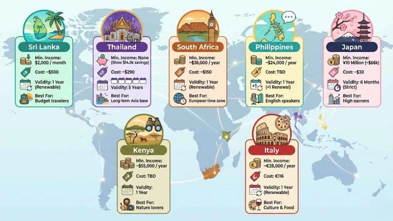 From the tropical shores of Sri Lanka (which literally just opened its portal this month) to the safari plains of Kenya, here is the definitive guide to the 7 newest digital nomad visas launched in late 2025. What you need to know about right now.