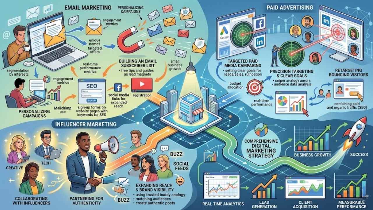 - Build in email marketing ties, since digital marketing can be broadly categorized into 8 main types including email marketing, which pairs well with paid ads for follow-ups. After someone clicks your paid ad, send personalized emails to nurture the lead, building that subscriber list over time. Creating a comprehensive marketing plan is essential to persuade consumers to purchase your products or services, so track KPIs like click-through rates or conversions to see what’s working, and adapt based on those real-time insights.