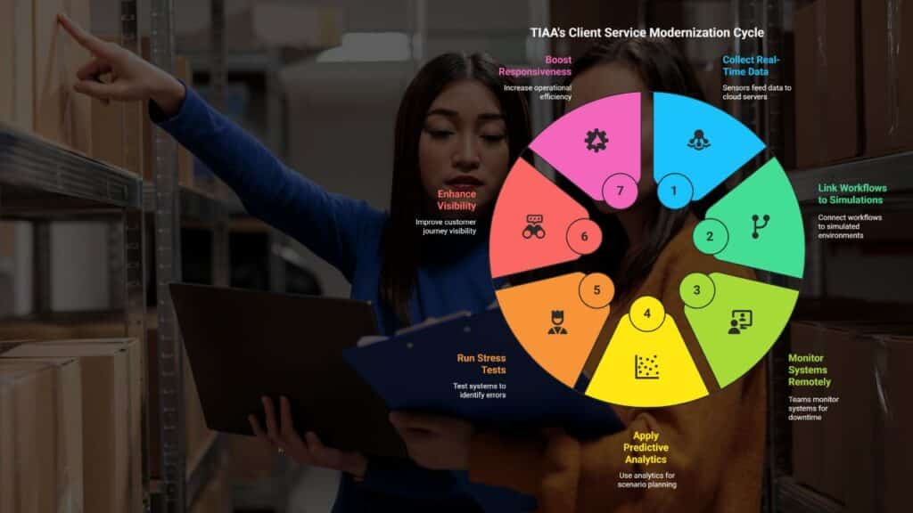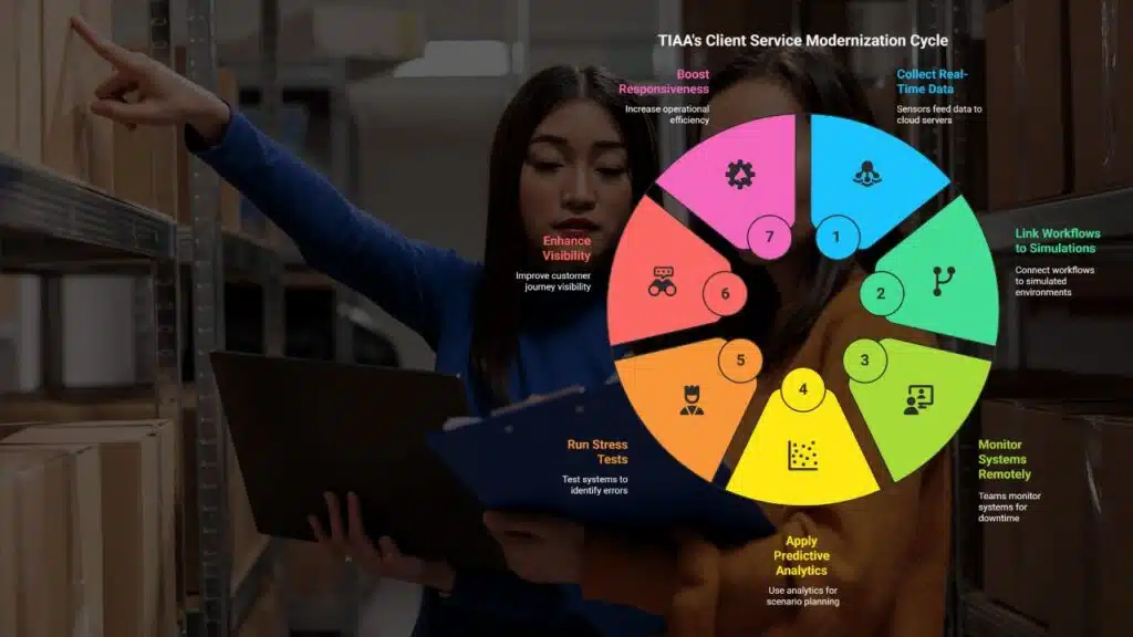 TIAA deploys digital twins to modernize client service operations. The tool merges IoT devices, AI, and machine learning algorithms to deliver advanced cognitive tasks in a single interface.