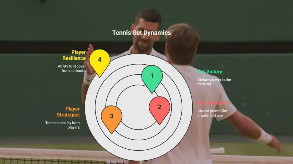 The third set proved to be a key turning point. Both players exchanged early breaks, showing resilience and tactical variation. Cobolli continued to press with heavy baseline shots and smart net play, but Djokovic’s consistency in long rallies began to wear him down.