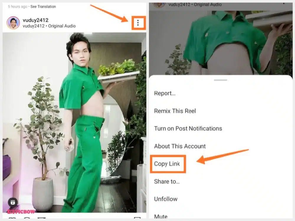 - Click the three dots button to the right of the video then select the option to copy the URL/link