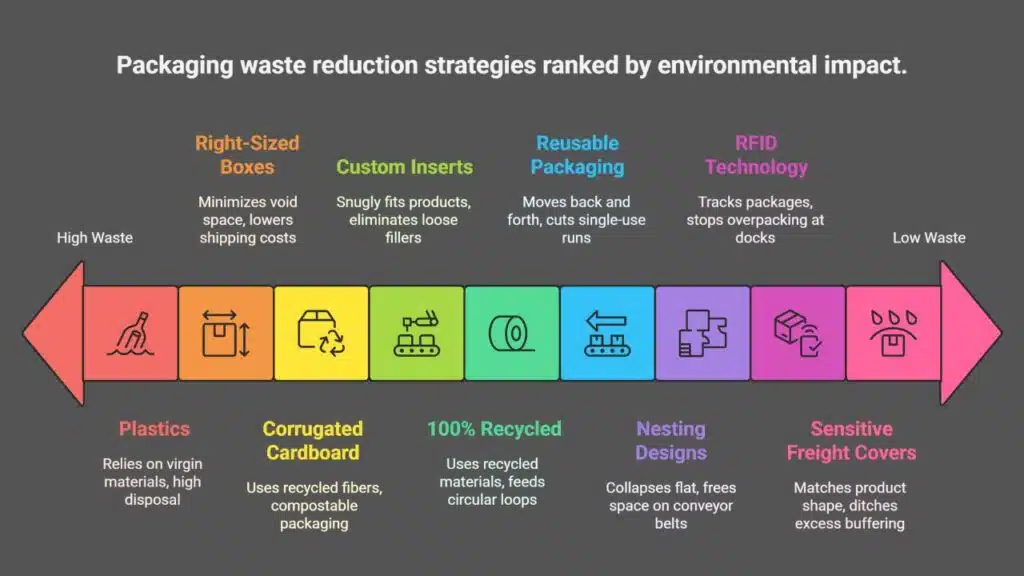 Many shippers fear their boxes end up as plastic waste. Companies now use biodegradable, recyclable, and reusable packaging to fight plastic waste. We list seven eco-friendly ideas, like fungal inserts, algae mailers, and smart boxes with RFID tags, to cut waste and join a circular economy.