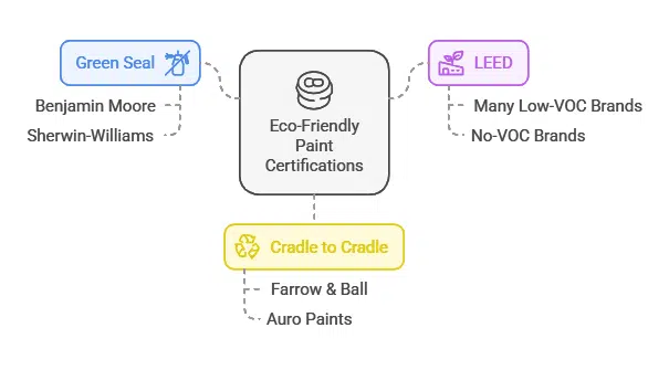 | Green Seal | Low VOCs, non-toxic ingredients, minimal waste | Benjamin Moore, Sherwin-Williams |