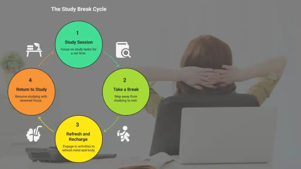 It is important that you take regular breaks for your physical and mental health and you should listen to your body when studying. Don’t be afraid to take a longer break if you need it and to ensure you are well-rested to increase your productivity without impacting your health.