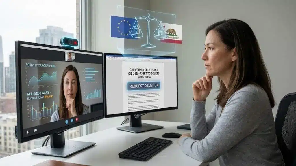 Countries set strict rules for AI surveillance in remote work. The European Union’s GDPR, since 2018, forces companies to protect employee data and get clear consent before monitoring. In the United States, the landscape is shifting dramatically with the California Delete Act (SB 362).
