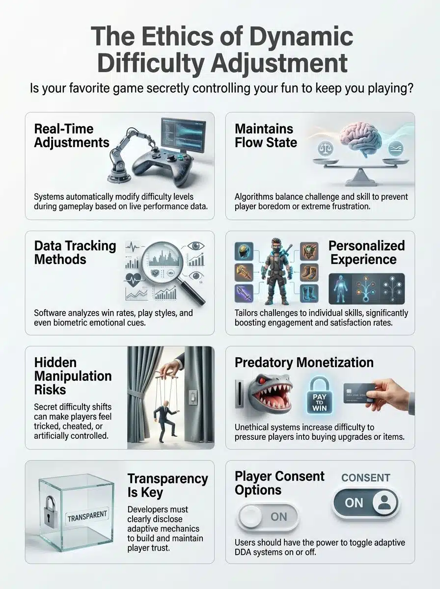 This is where the conversation shifts from “helpful design” to “psychological manipulation.” If a game changes the rules without telling you, is your victory actually real? And worse, are these systems being used to help you have fun, or to empty your wallet?