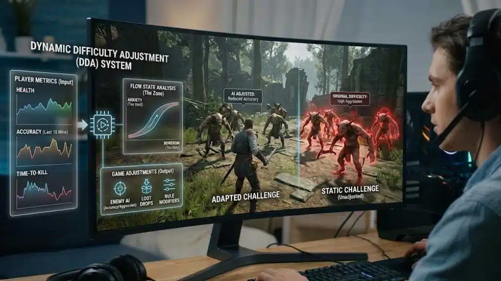 Think of DDA as a personalized Dungeon Master. Instead of forcing you to choose between “Easy,” “Medium,” or “Hard” at the start—before you even know how the game plays—the system learns your preferences. If you love exploration but are bad at combat, the game can quietly lower enemy health while keeping puzzles complex. This creates a unique experience where the game feels “right” for you, even if your friend is playing a mathematically different version of the same title.