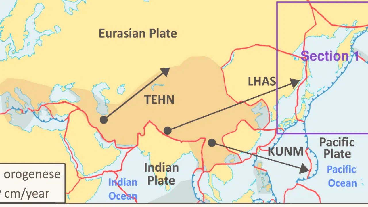 Other interaction between plates such as Burmese or Sunda plays a role in this tectonic system, making it quite complex, so predicting exact locations for these earthquakes remains difficult.