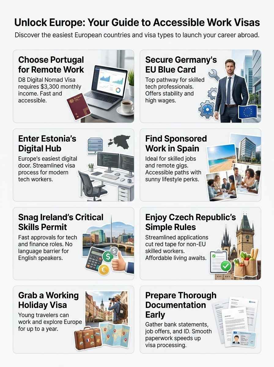 Germany pushes its EU Blue Card option, a top pick for 2026 job seekers, with efficient timelines that draw in talent. Ireland and the Czech Republic keep things simple too, focusing on quick turns for non-EU folks.