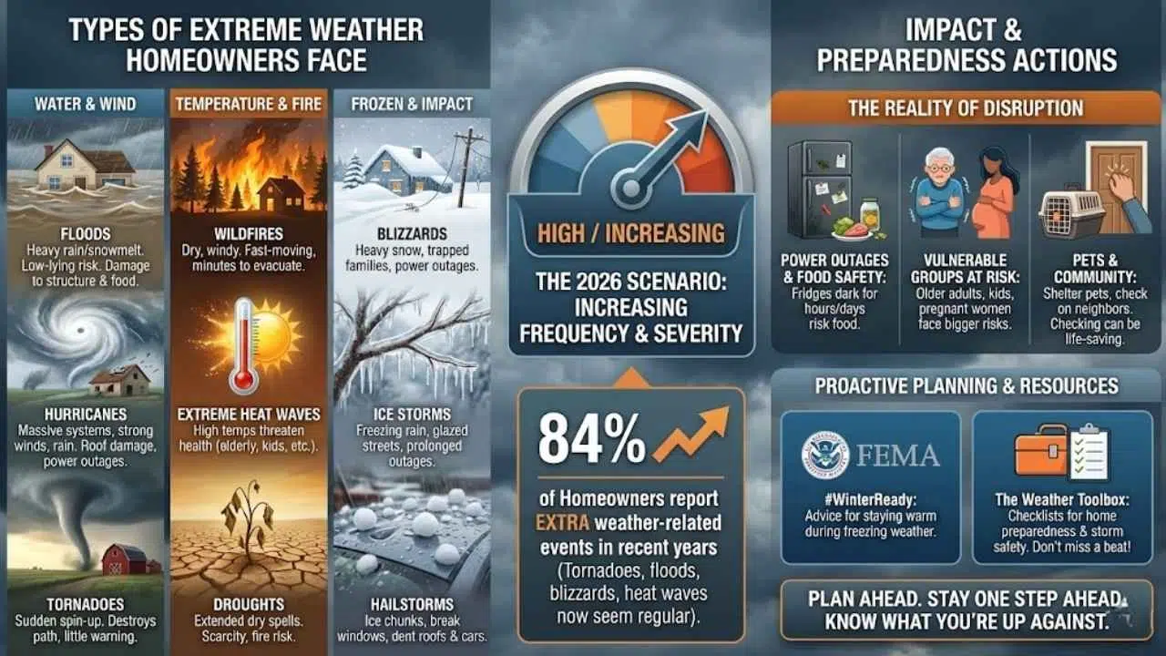 Does it feel like the weather has been getting wilder lately? You are not the only one noticing it. Extreme Weather Preparedness For Homeowner means getting your house and family ready for harsh storms, floods, blizzards, heatwaves, and power outages. In 2026, these wild weather events are hitting homes more than ever before.