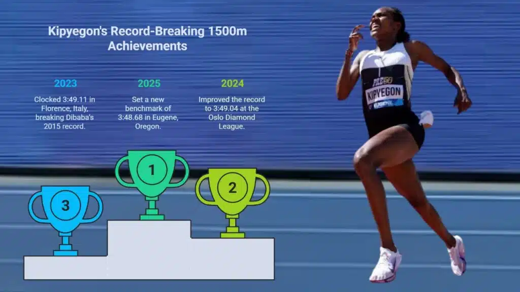 The entire podium featured remarkable times, with all three women finishing under 3:53. This race marked one of the fastest 1500m fields in history, showing how far the discipline has advanced in recent years—partly inspired by Kipyegon herself.