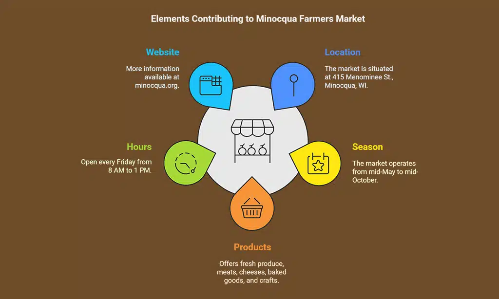 Nestled in the Northwoods, the Minocqua Farmers Market offers a charming setting for shoppers to find locally grown produce, meats, cheeses, baked goods, and handcrafted items.