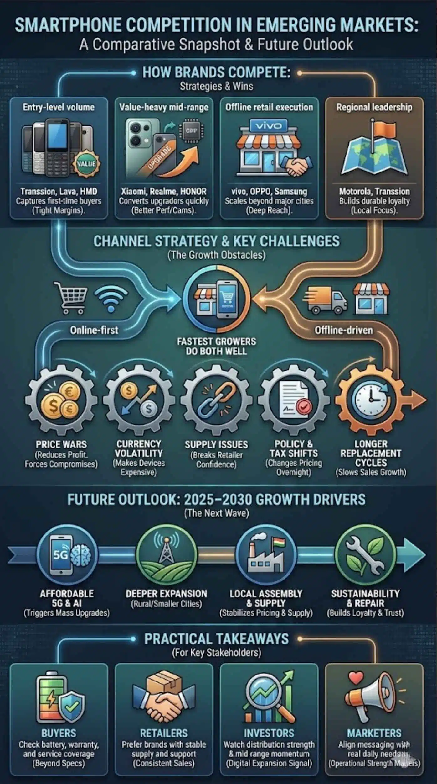| Regional leadership | Motorola, Transsion | Builds durable loyalty |