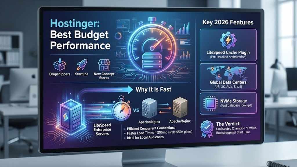 Hostinger uses a server technology called LiteSpeed, which is fundamentally faster than the older Apache/Nginx web servers used by many budget competitors. LiteSpeed handles concurrent connections (lots of people on the site at once) incredibly efficiently.