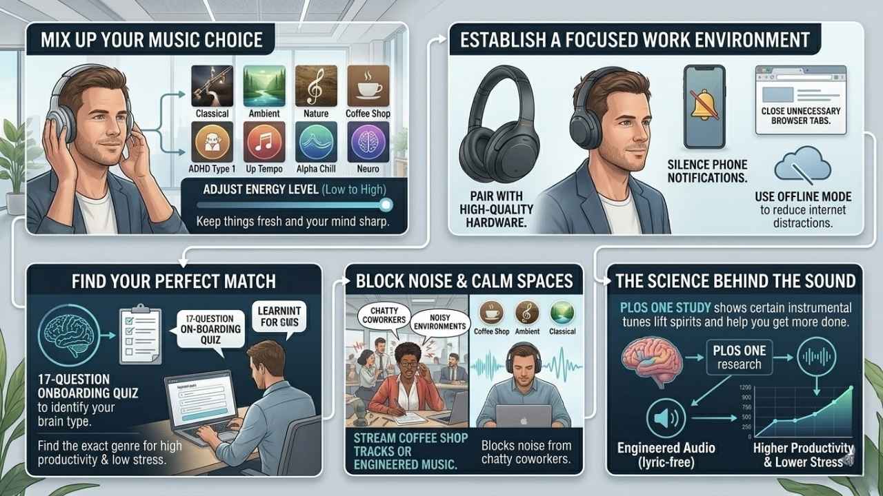 Scientists have found that lyric-free songs help people avoid distractions and boost workflow efficiency. With these strategies in place, daily productivity gets a big lift without adding extra effort to routines.
